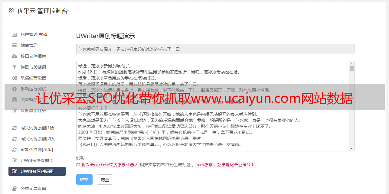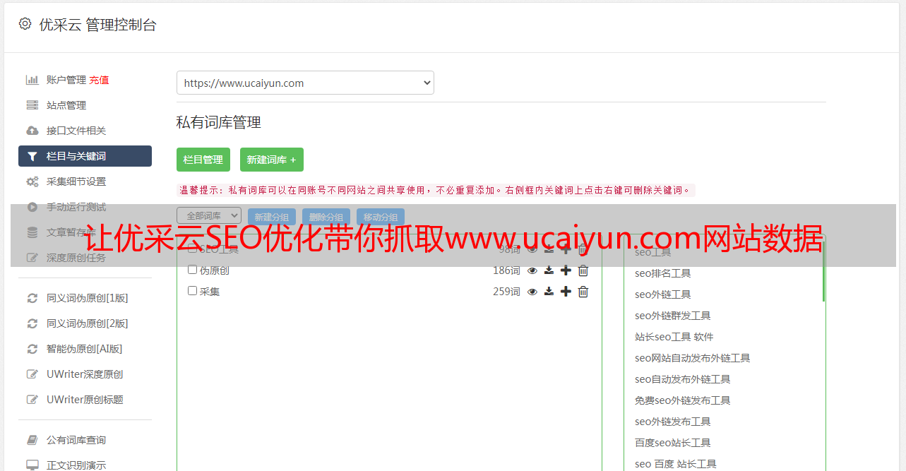 让优采云SEO优化带你抓取www.ucaiyun.com网站数据