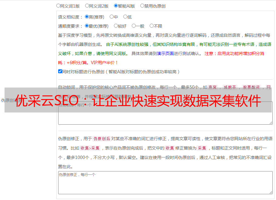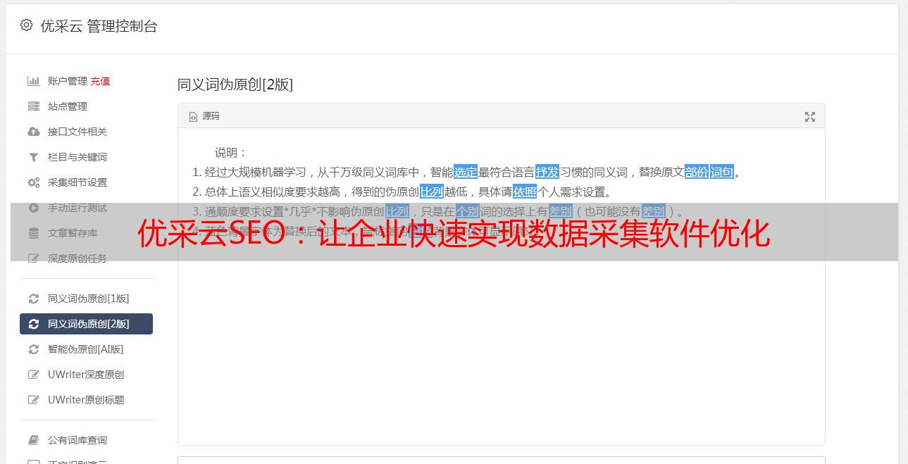 在当前,自采集软件已经发展成为企业信息化的必备工具,不仅可以帮助企业快速实现数据采集,还可以有效地实现SEO优化。SEO优化一般是指对网站进行搜索引擎优化,使其在搜索引擎中得到最佳位置。而自采集软件也能够在此方面发挥作用:通过分析和利用关键词,帮助企业快速实现SEO优化。