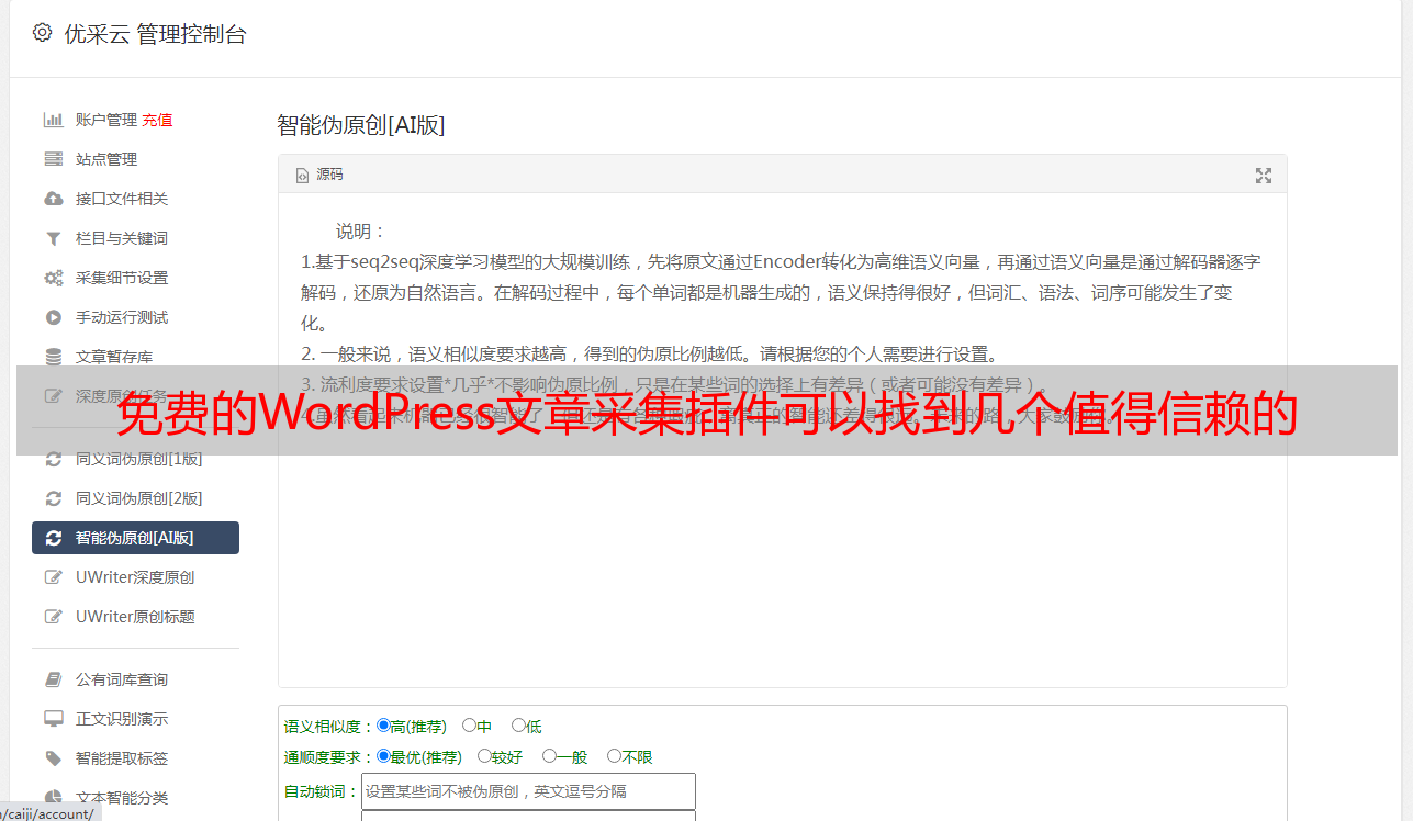 总之,优采云SEO优化是一个很不错的WordPress文章采集工具,考虑到其功能强大、使用方便、价格合理、易上手等特性;并且作为开源项目也是免费使用的;所以建议大家把它作为WordPress文章采集工具来使用。如想要尝试使用此工具,请前往它的官方网站www.ucaiyun.com 中去体验吧!