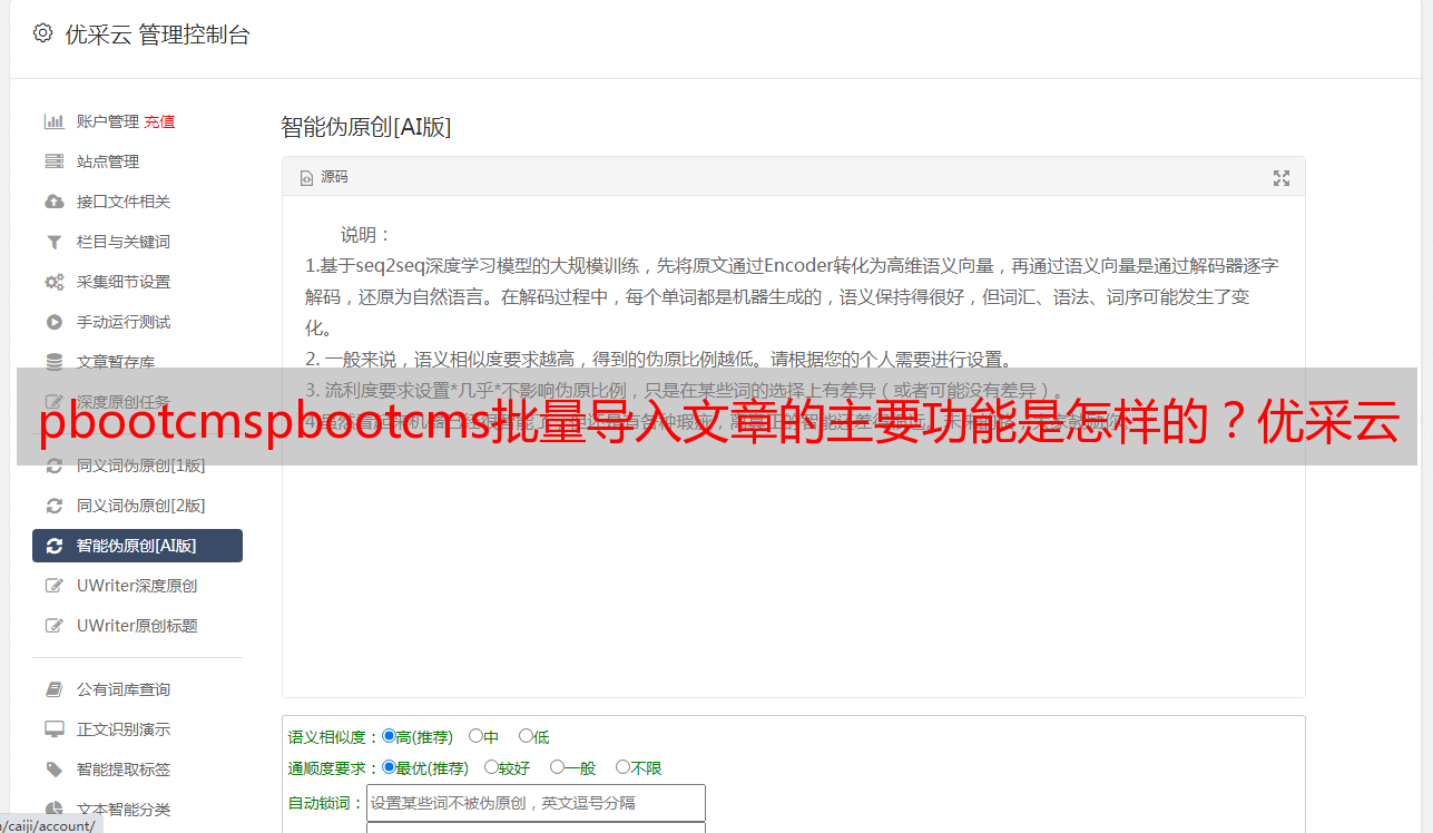 pbootcmspbootcms批量导入文章的主要功能是怎样的?优采云
