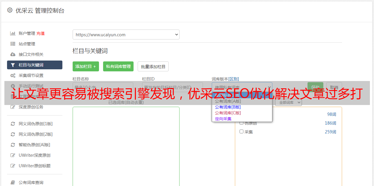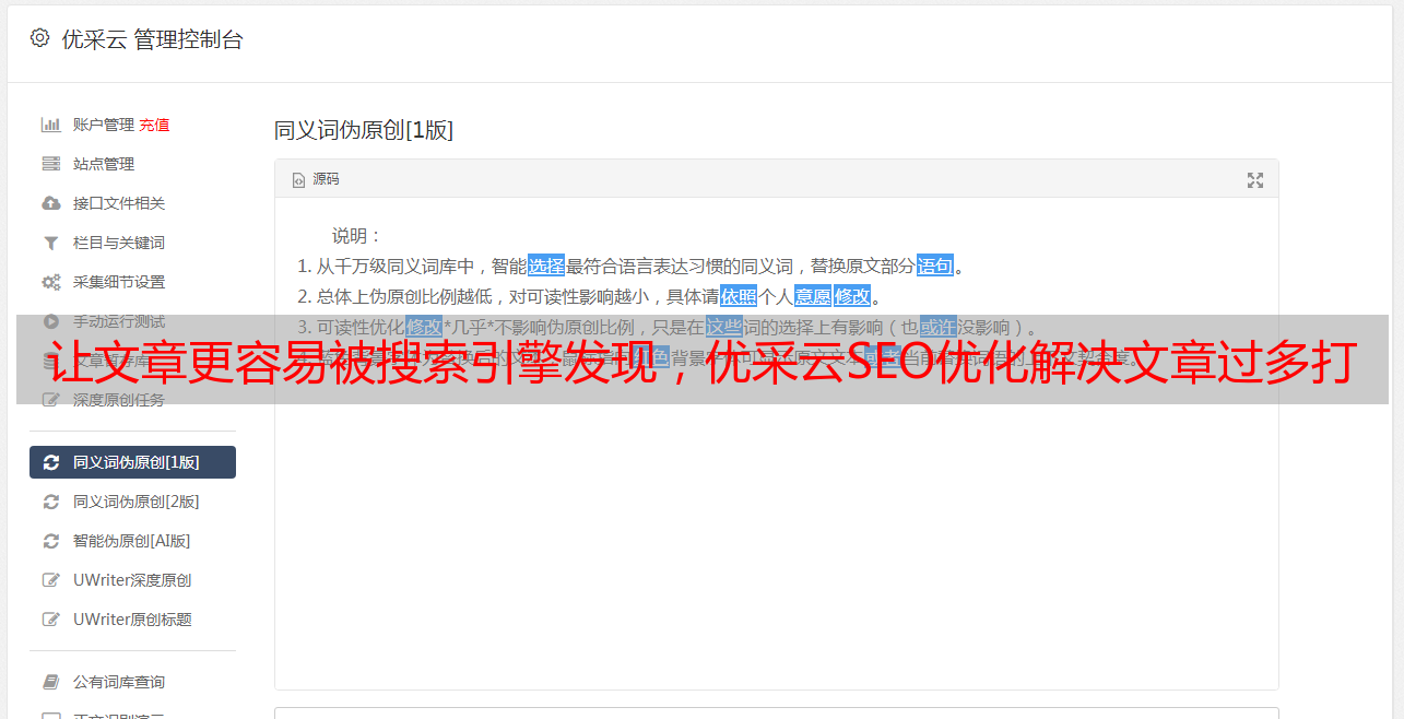 总之,文章太多而打不开是常见的问题;考虑到其中原因很可能是因为SEO方面存在问题;想要解决这个问题就应当依靠SEO优化来帮助我们。而对于想要学习并掌握SEO方法的人来说,使用优采云 SEO 优化就是一个很好的选择。