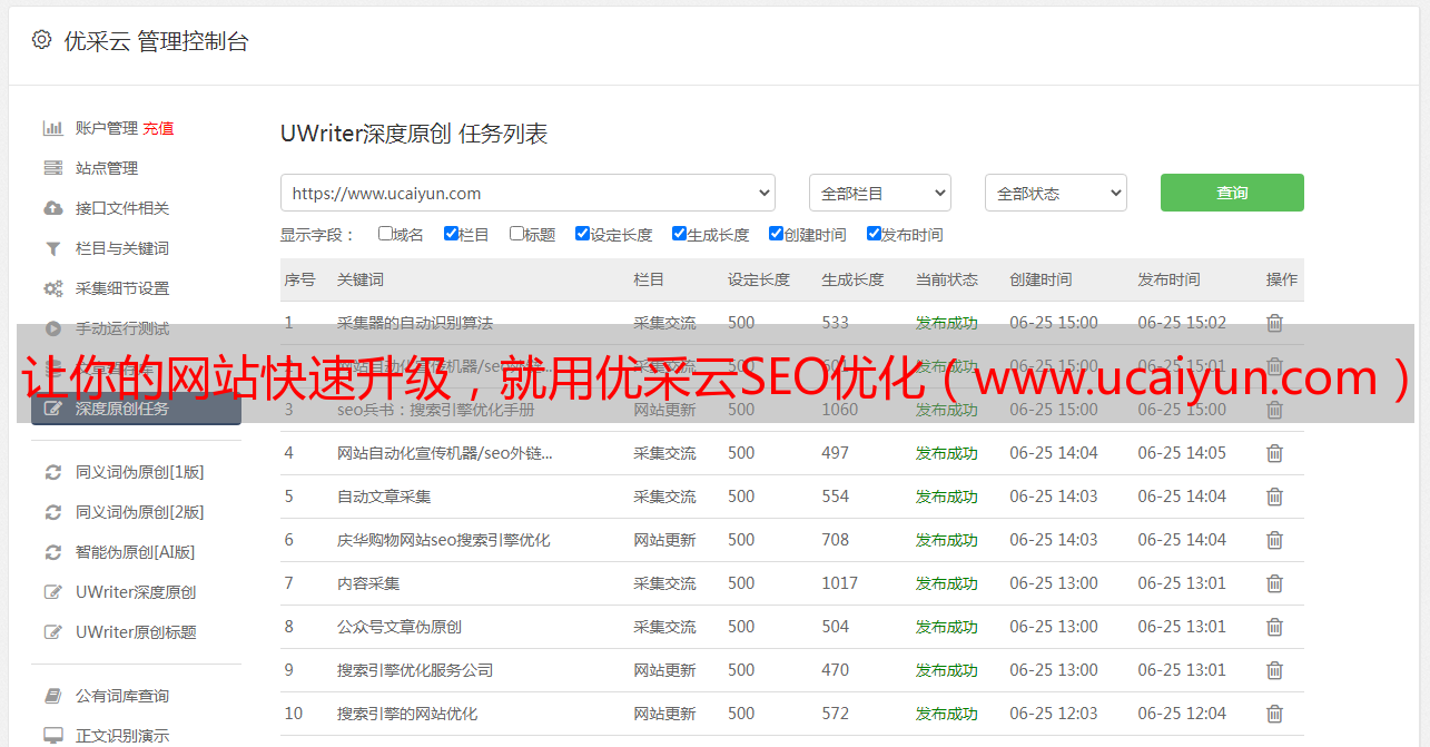 让你的网站快速升级,就用优采云SEO优化(www.ucaiyun.com)