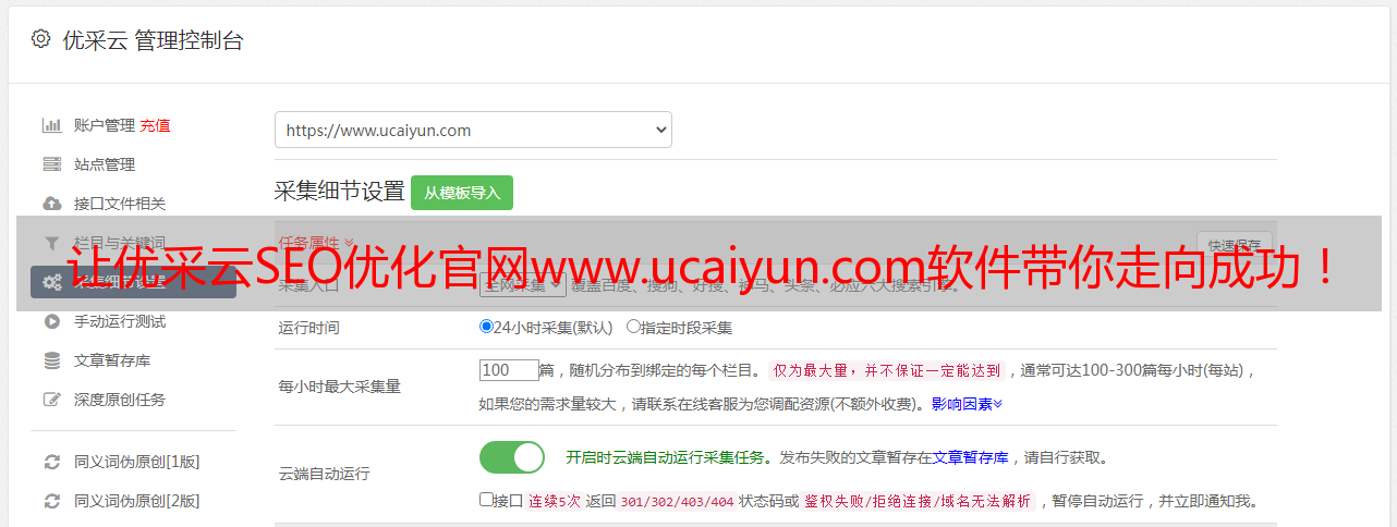 让优采云SEO优化官网www.ucaiyun.com软件带你走向成功!