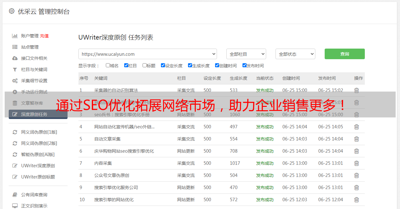 优采云的服务不仅限于网站采集,还包括SEO优化。SEO优化是通过使用合理的关键词来增强网站在搜索引擎中的可见度,从而获得更多流量。SEO优化可以帮助企业扩大在网上市场覆盖面,也能够带来意外的效益。
