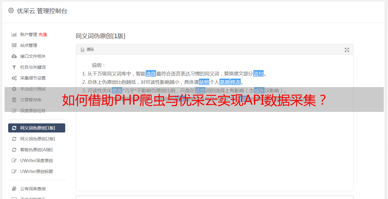 优采云 发布时间: 2023-03-01 19:36在如今互联网信息极其丰富的时代,数据采集已成为信息获取的重要方式。而API接口作为现代互联网的核心技术之一,更是数据采集的重要来源。本文将介绍如何使用PHP爬虫结合优采云实现API数据采集,并结合SEO优化技巧使采集效果更加出色。