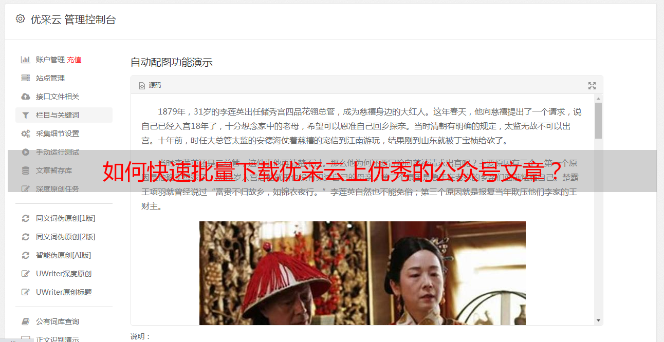 最近,我也在使用优采云来下载我关注的公众号文章,这让我感到非常的方便和快捷。通过优采云,我可以轻松地将我的阅读材料保存在本地,不用担心网络不稳定或者公众号文章被删除的问题。