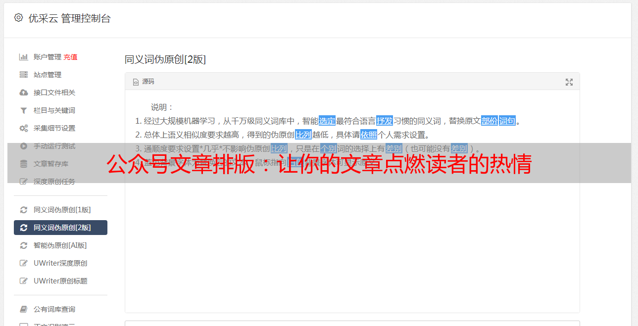 再次,SEO优化是公众号排版的必要环节。选用合适的关键词和标签,将文章的SEO优化做到极致。优采云是一款优秀的SEO优化工具,可以帮助自媒体人快速、准确地了解自己文章的SEO表现,帮助优化关键词和标签。