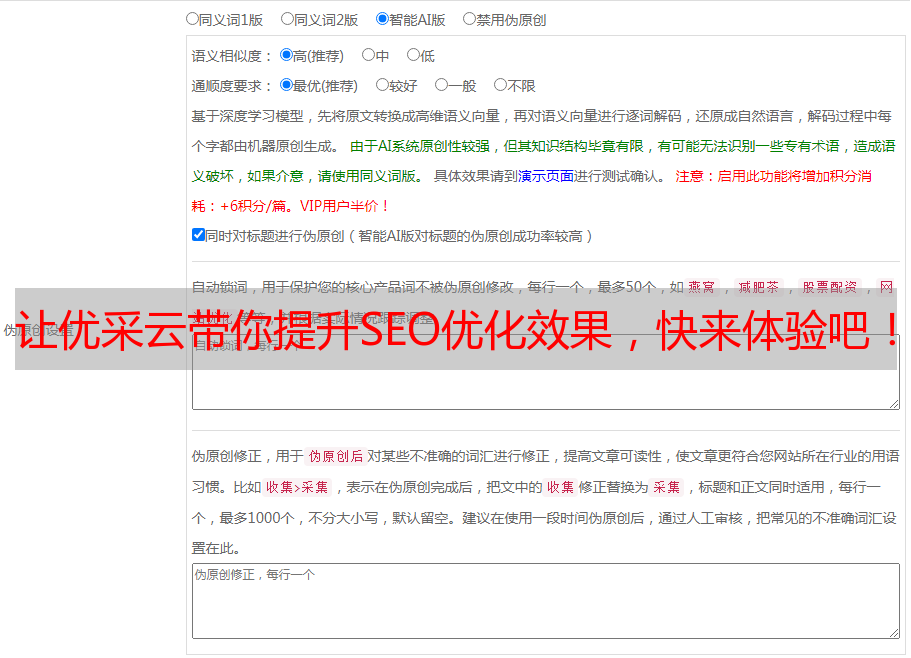 优采云的优势不仅在于SEO文章自动生成,还在于其完善的功能和优质的服务。使用优采云,站长不仅可以得到一份优质的SEO工具,还可以得到一份专业的SEO优化方案,帮助站长轻松提升网站的SEO效果。