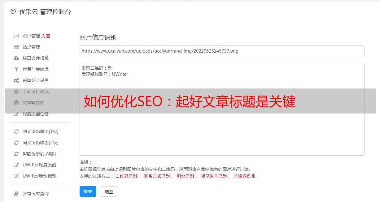 除了帮助您生成文章起标题,优采云还可以帮助您进行关键词研究、优化文章内容、监控排名等等。通过优采云的帮助,您可以轻松地进行SEO优化,从而让您的网站在搜索引擎中获得更多的曝光和客户。