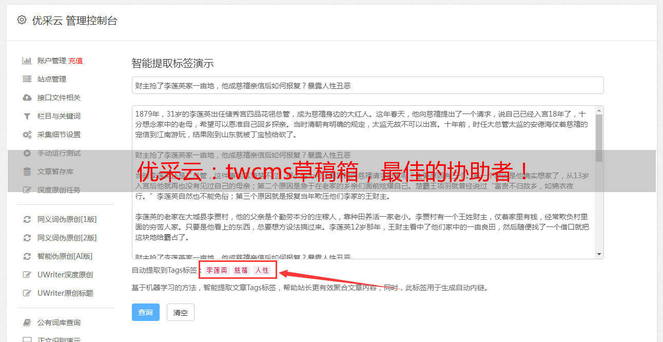 优采云:twcms草稿箱,最佳的协助者!