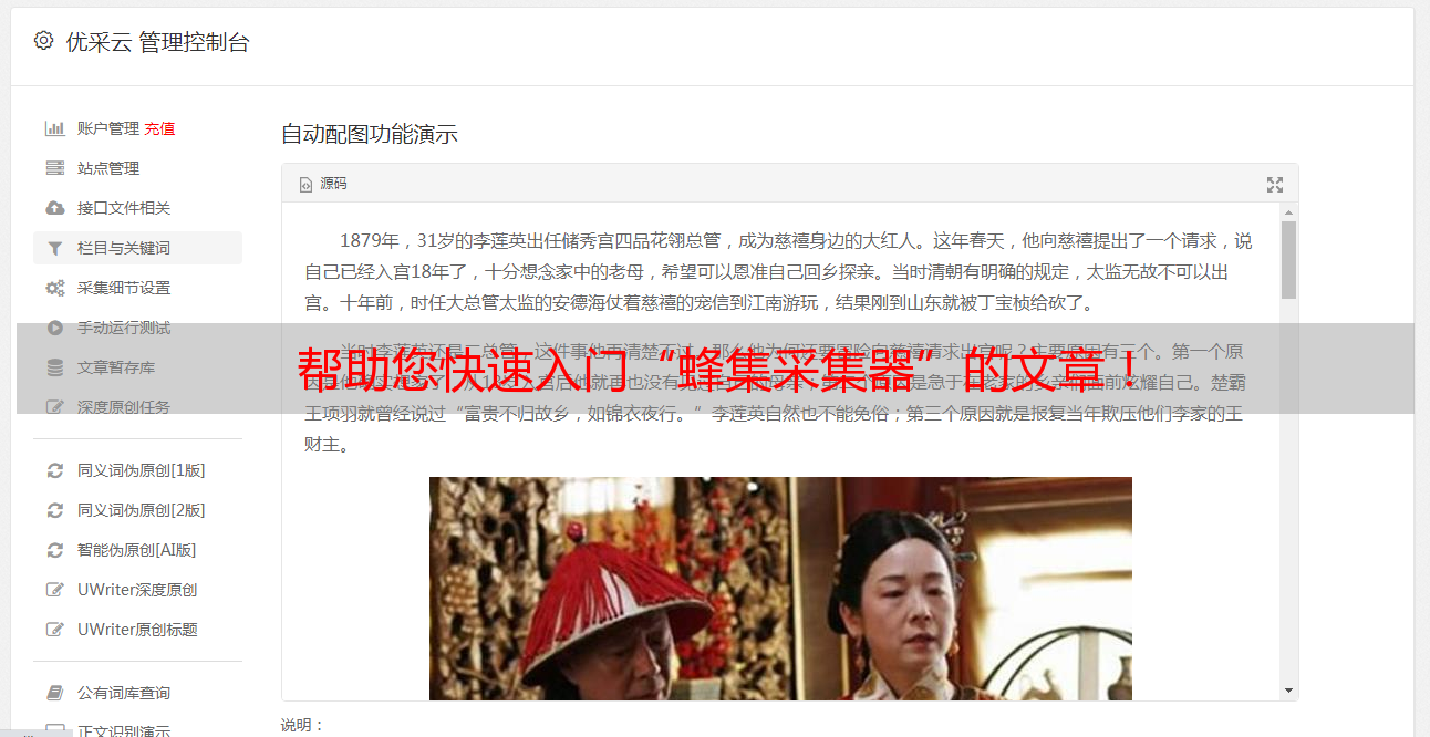 优采云 发布时间: 2021-06-10 04:56帮助您快速入门“蜂集采集器”的文章!