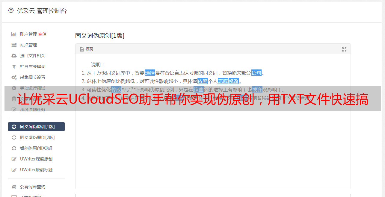 让优采云UCloudSEO助手帮你实现伪原创,用TXT文件快速搞定同义词!