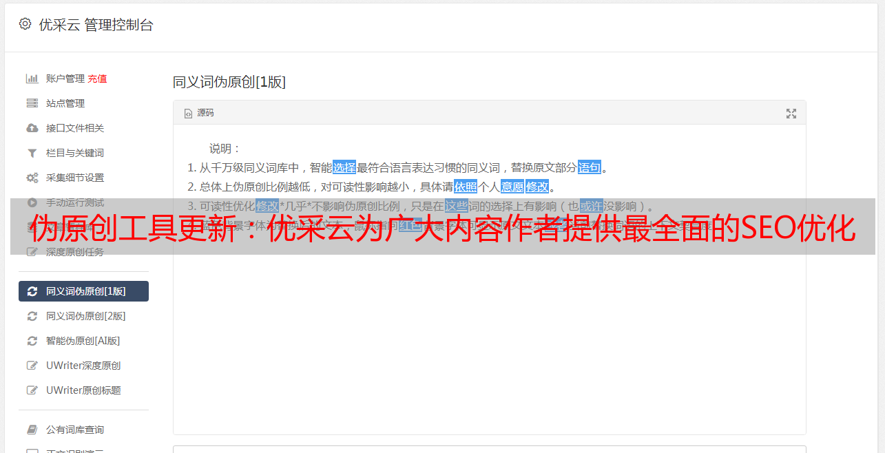 伪原创工具更新:优采云为广大内容作者提供最全面的SEO优化解决方案