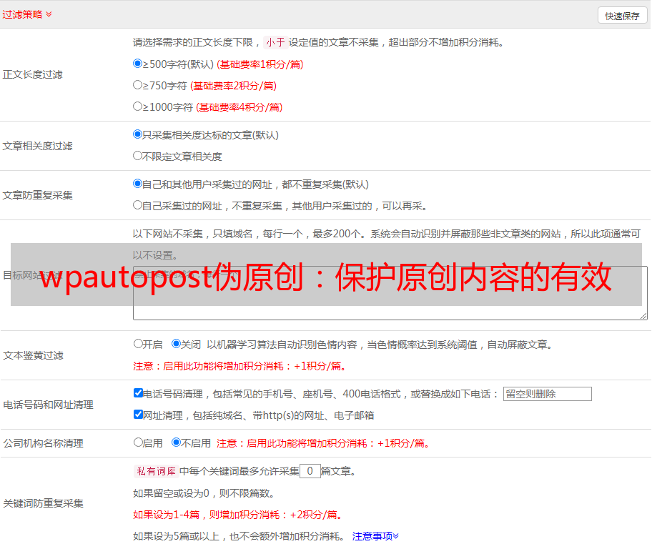 总之,wp autopost伪原创是一种有效的方式来吸引目标受众并增强SEO效果。但是在使用时也要注意避免版权风险。如果想要快速生成高质量内容并将文章快速发布到眾多不同平台上,就应该使用专业的SEO工具来帮助实施wp autopost伪原创(例如优采云www.ucaiyun.com )。
