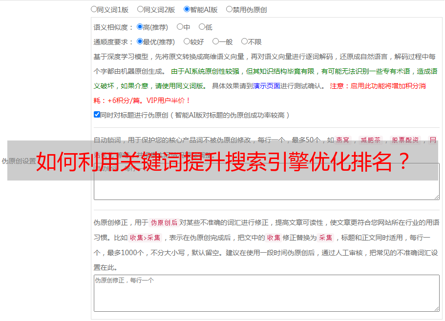 此外,这款软件还能够帮助用户快速、准确地将选定好的关键词应用到站内优化中,并提升站内SEO效果。它能够根据用户的要求快速找到站内文章中相应的位置并插入相应的关键词;此外,它还能够根据用户所选定好的关键词生成相应内容来填补站内文章中字数不足之处。这样一来,就不必再去手动寻找和填写相应信息了。