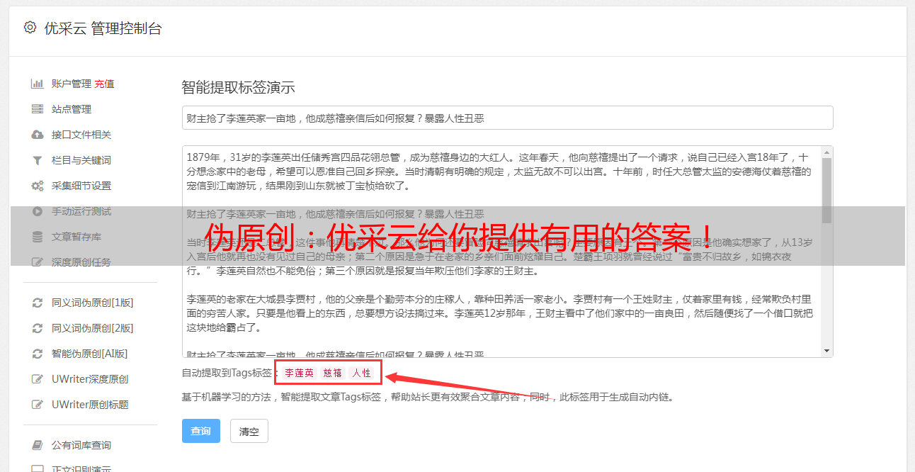 首先,我们需要明确伪原创技术的定义。伪原创指的是通过软件或其他手段对原文进行修改、替换、添加等操作,使得新产生的文章与原文相似度较高,但语言表达、语法等方面与原文有所不同。在SEO优化中,伪原创技术的应用主要包括两个方面:一是对已有的优质原创文章进行伪原创,以此增加同一关键词的相关性,提高排名;二是对其他网站或文章进行伪原创,以获取更多的流量。但是,这种优化方式并不是所有的搜索引擎都认可,有些搜索引擎如Google等认为伪原创技术是一种不正当的行为,会对此进行惩罚。另外,伪原创的文章可能存在很多语义错误,对用户的阅读体验和对原创文章的价值也有一定的损害。