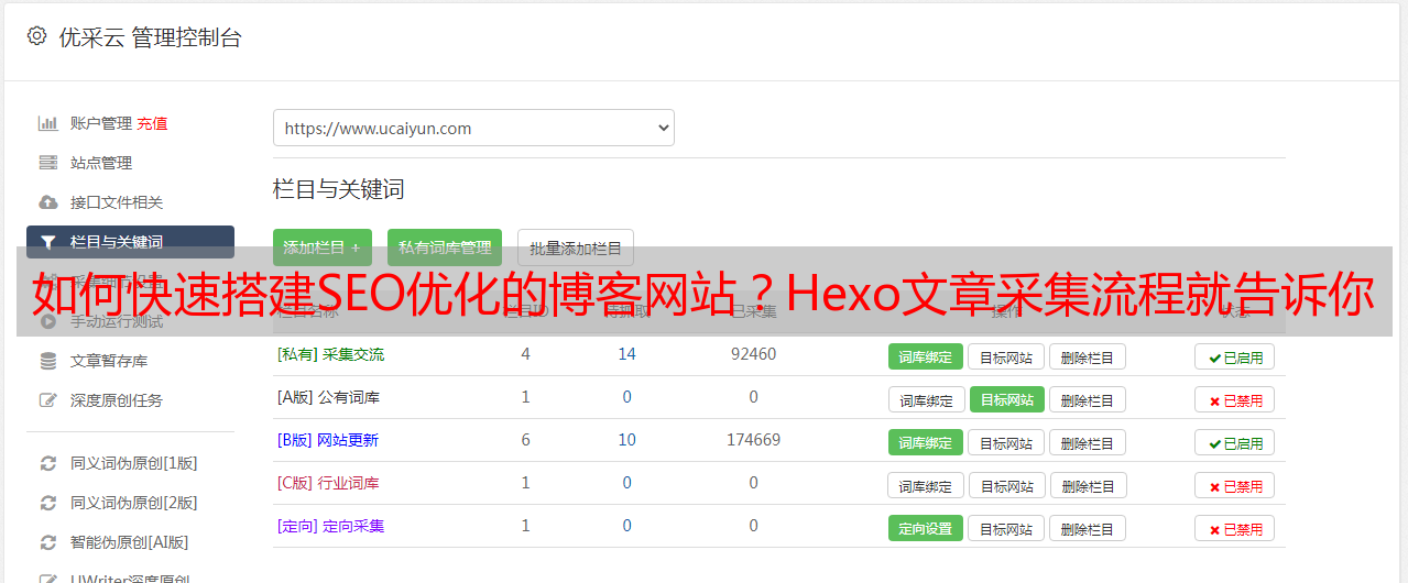 三、Hexo文章采集的实例和优采云的应用