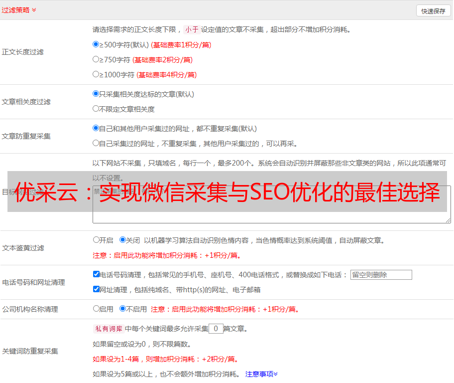 除此之外,优采云还提供了SEO优化的功能。它可以根据我们的需求,自动采集关键词、描述和标签等信息,并进行关键词优化和标题优化,从而帮助我们提升文章的搜索排名和曝光度。