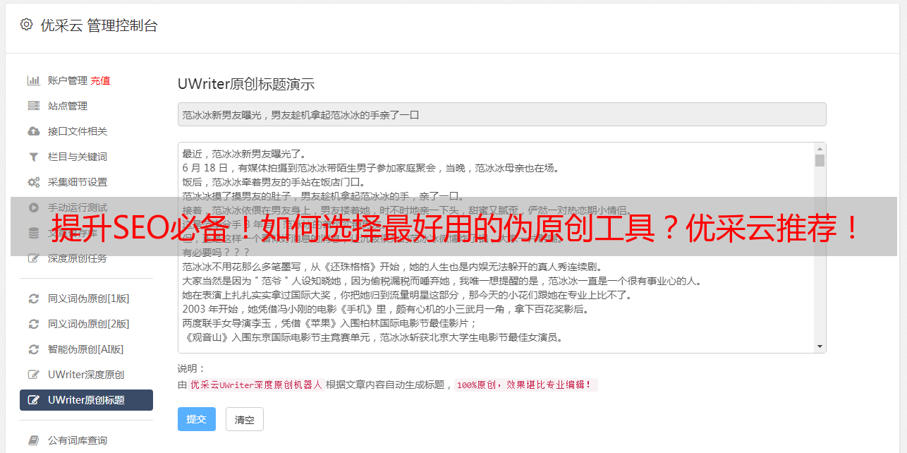提升SEO必备!如何选择最好用的伪原创工具?优采云推荐!