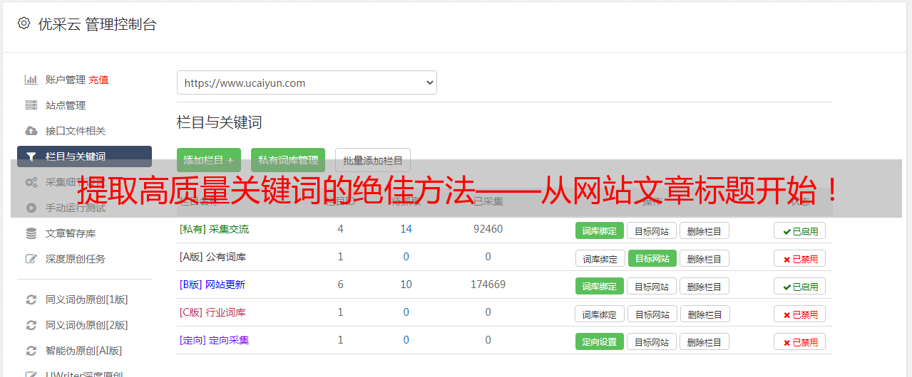 在提取关键词时,可以利用一些工具进行辅助。例如优采云提供的SEO优化工具,可以帮助您分析文章标题和内容中的关键词,并根据搜索量、竞争度等指标进行评估和推荐。