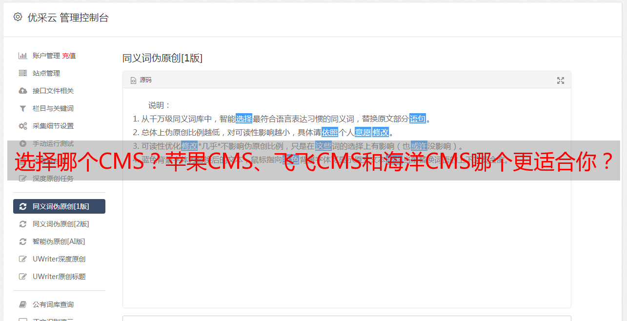 优采云 发布时间: 2023-03-02 13:13苹果CMS、飞飞CMS和海洋CMS,哪个更好?|自媒体SEO优化