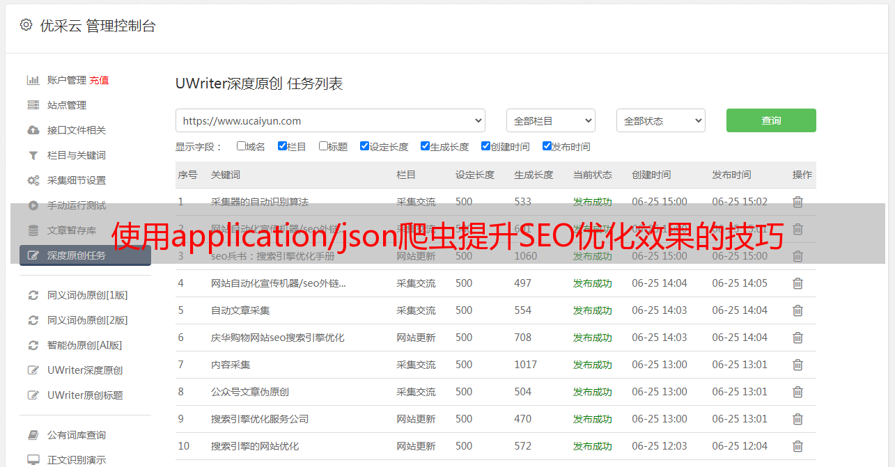 优采云 发布时间: 2023-03-02 16:15在当今互联网竞争激烈的环境下,网站的SEO优化显得格外重要。而利用application/json爬虫技术可以快速提升网站的SEO优化效果,让你的网站在搜索引擎中获得更好的排名。
