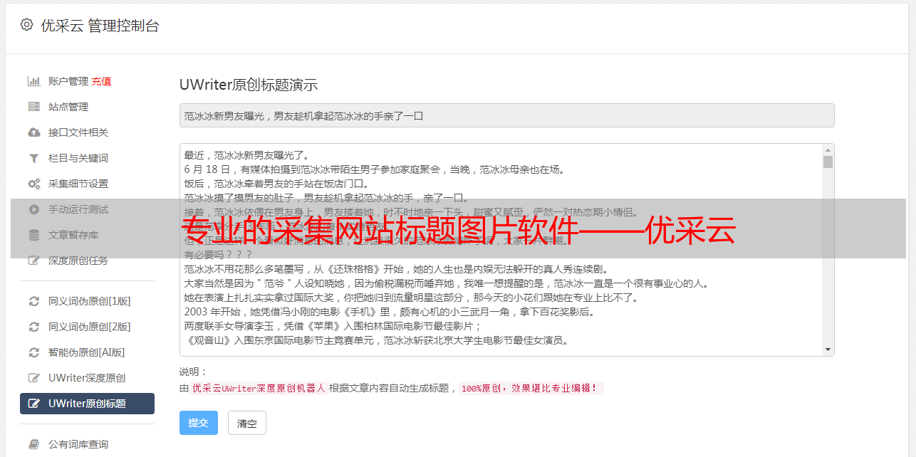 总之,如果您正在寻找一款高效、稳定、安全、智能的采集网站标题图片软件来帮助您实现SEO优化目标,那么优采云将是您最好的选择!欢迎登录官方网站www.ucaiyun.com了解更多详细信息。