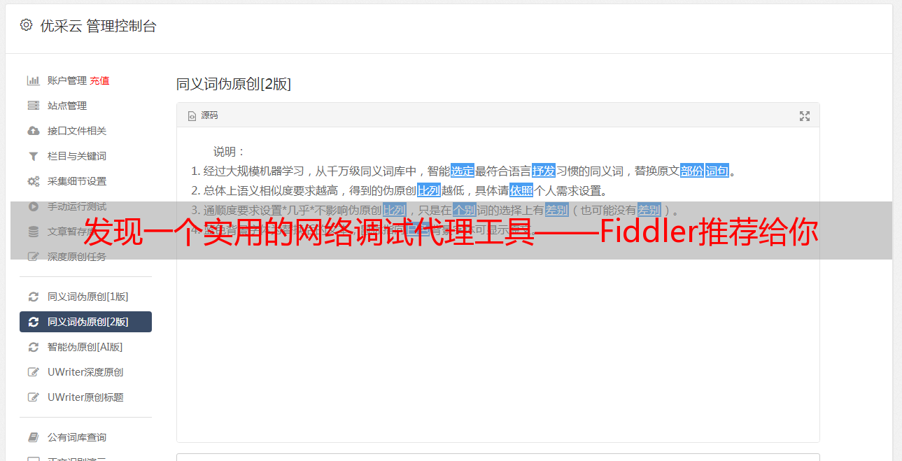 总之,通过使用Fiddler这样的工具可以帮助我们突破网页数据接口加密技术限制,从而获取到更多有价值的信息。当然,在进行*敏*感*词*数据采集时还需要考虑一些其他问题,比如IP封禁、反爬虫机制等问题。如果你想更深入地了解相关知识和技巧,推荐关注优采云(www.ucaiyun.com)提供的SEO优化服务和网络营销培训课程。