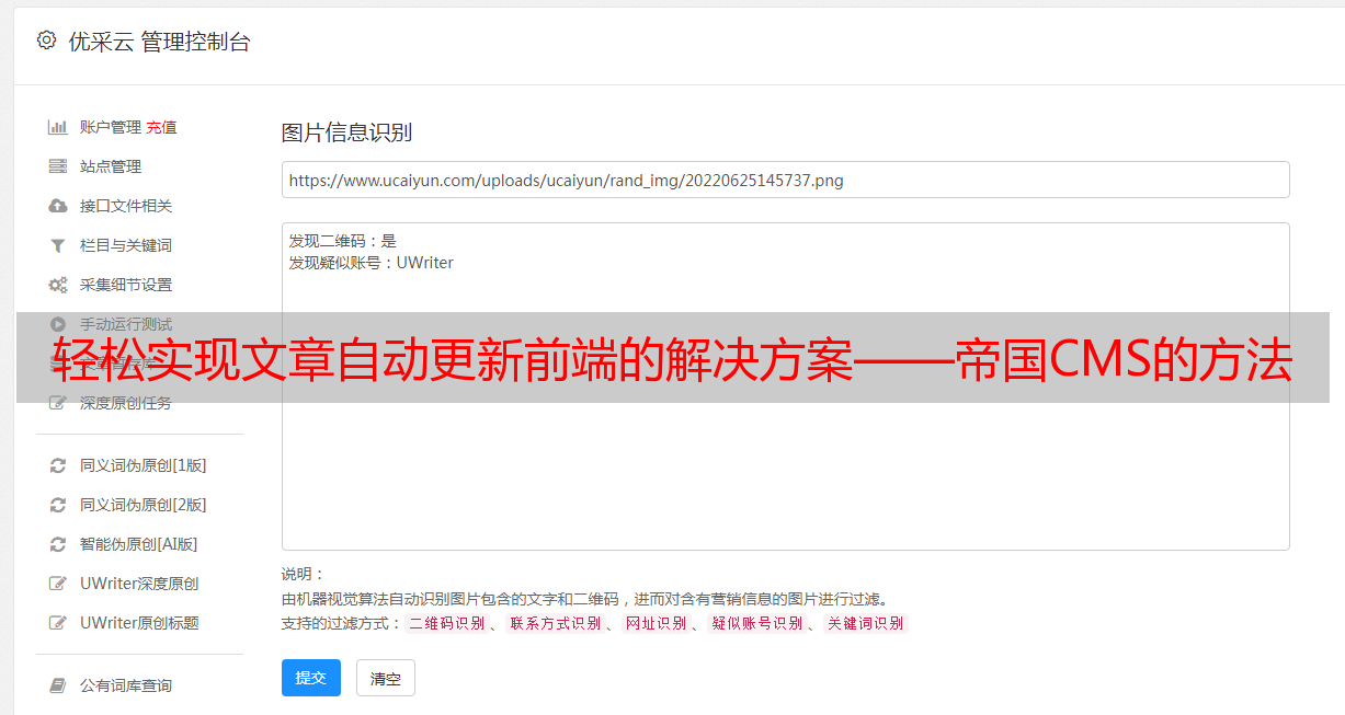 总之,“帝国CMS文章自动更新前端”是一款实用、高效、易用的SEO优化工具,可以大大提高您网站的推广效果和用户体验。