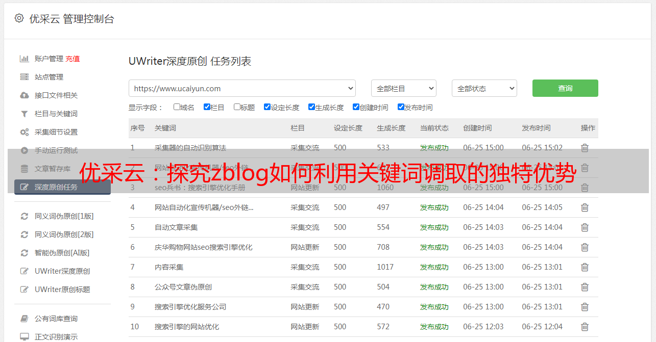 最后,值得一提的是,在使用zblog进行SEO优化时,我们还可以利用优采云这样的工具来进一步提高效率。优采云可以帮助我们快速分析网站数据、制定合理的营销策略,并且提供了很多实用性极强的功能。比如说,在写文章时,我们可以通过优采云来分析关键词竞争度、挖掘长尾关键词等,从而使我们的文章更具有吸引力。