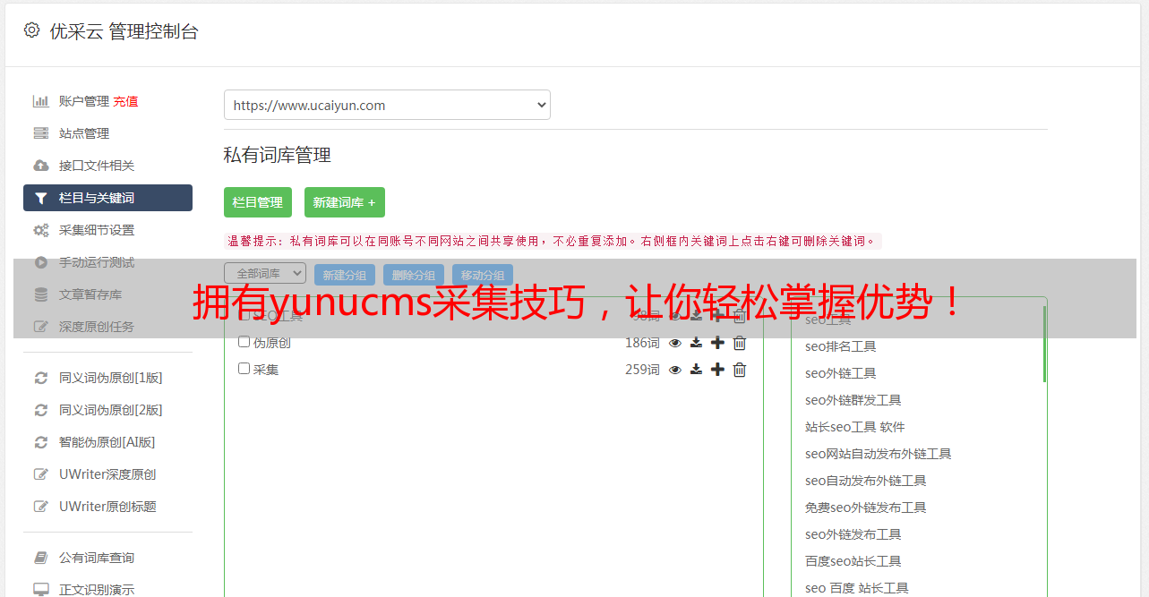拥有yunucms采集技巧,让你轻松掌握优势!