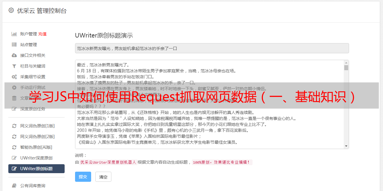 学习JS中如何使用Request抓取网页数据(一、基础知识)