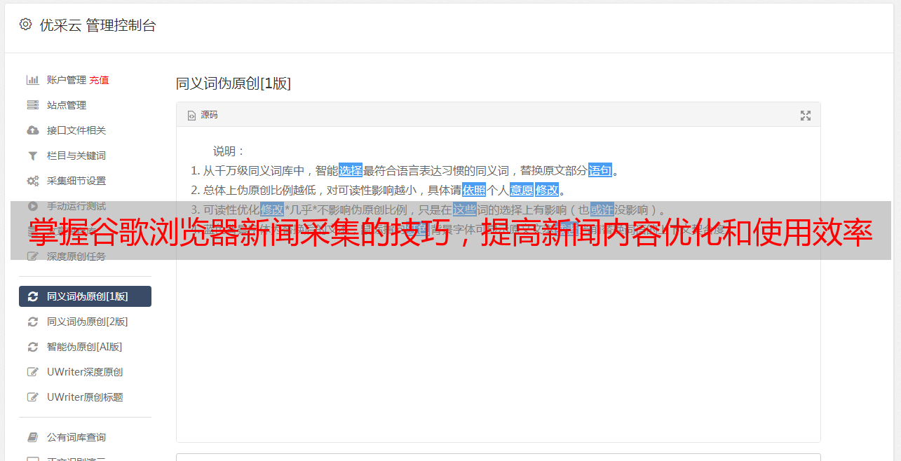 优采云 发布时间: 2023-03-03 11:42近年来,随着互联网的快速发展,人们获取新闻的方式也发生了巨大变化。而作为一款领先的浏览器,谷歌浏览器不仅具有安全、快速的特点,更是为用户提供了便利的新闻采集功能。本文将从五个方面详细探讨谷歌浏览器采集新闻内容的优势和使用方法。