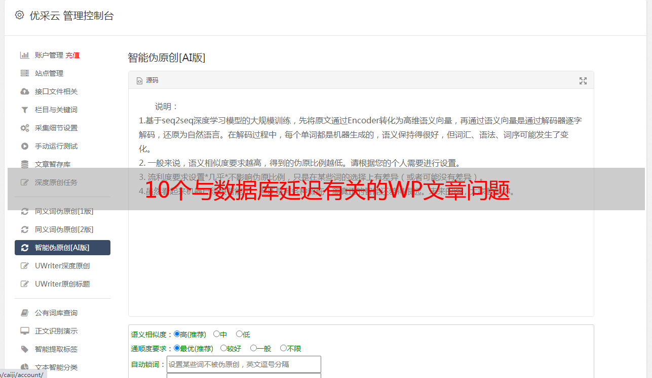 优采云 发布时间: 2023-03-03 12:14随着自媒体时代的到来,越来越多的人开始涉足自媒体领域,其中不乏使用WordPress建站的自媒体博主。然而,当文章数量逐渐增多时,很多人会发现网站访问速度变慢,甚至出现数据库连接错误等问题。这是因为WP文章多了数据库慢所导致的。那么,如何解决这个问题呢?本文将从以下10个方面进行讨论。