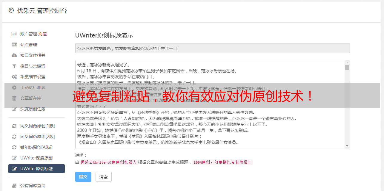 优采云 发布时间: 2023-03-03 12:15随着互联网的发展,产品信息的发布越来越重要。而伪原创技术则成为了许多企业推广产品的重要手段。