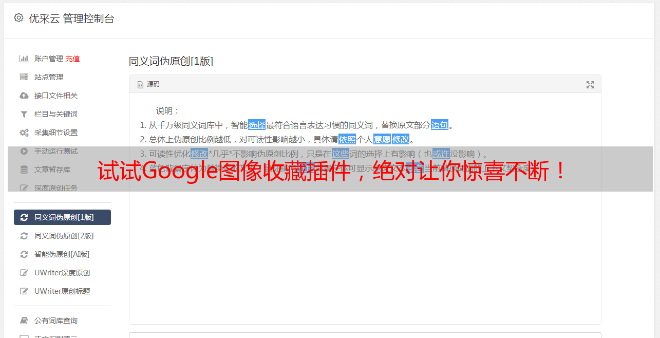 优采云 发布时间: 2023-03-03 13:55如果你是一个需要大量使用图片的设计师或者网站编辑,你一定知道找到高质量的图片有多么困难。而Google Image Collection Plugin可以帮助你轻松解决这个问题。