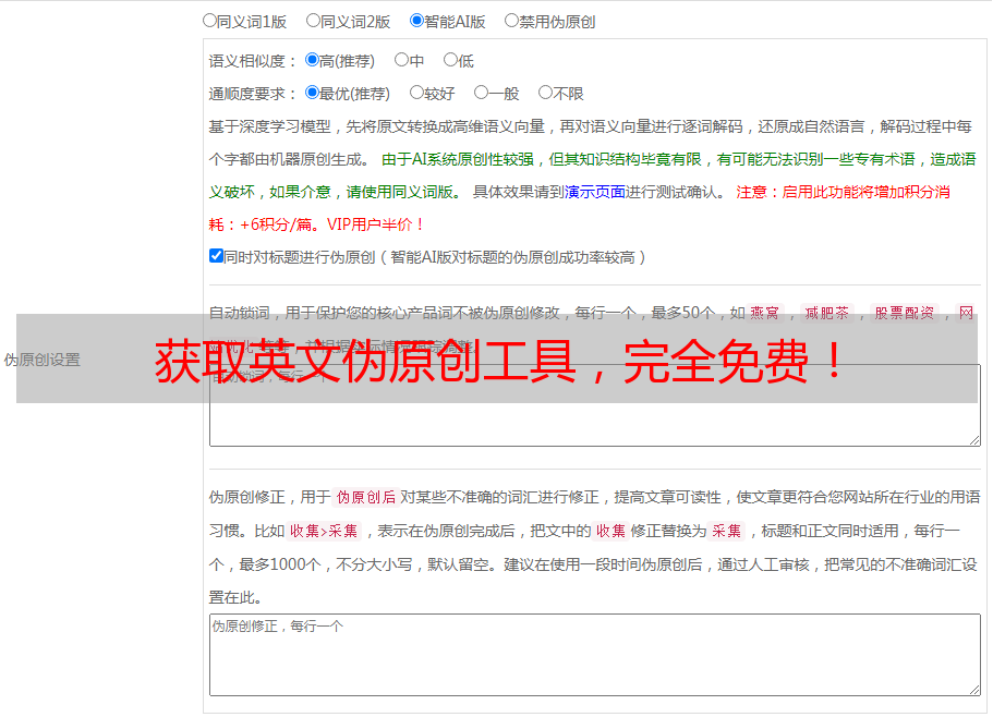 总之,在创作时一定要注重原创性。如果你需要帮助,这个免费英文伪原创工具可以给你提供一些帮助。但是请记住,在使用它时要遵守道德规范和责任感。