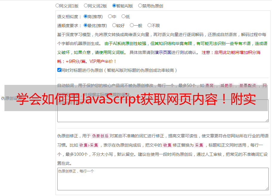 总之,使用JavaScript来收集网页内容非常重要。它可以帮助我们节省时间和精力,并使我们更加高效地获取所需信息。希望这篇文章能够对您有所帮助!