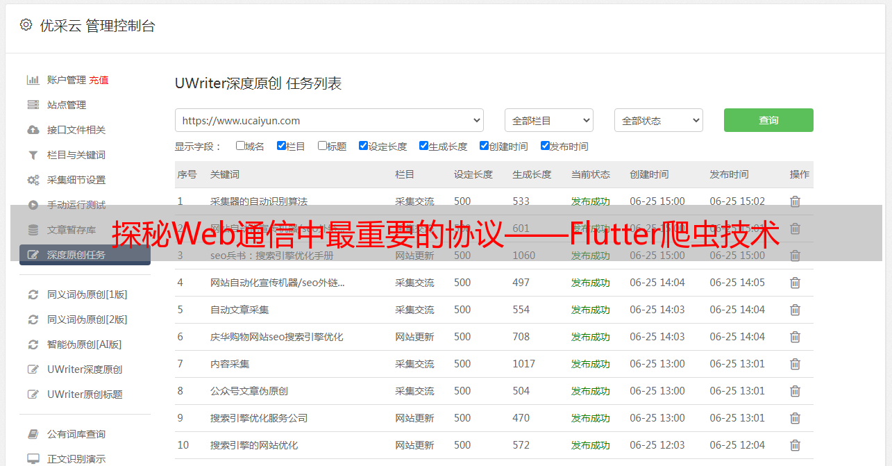 优采云 发布时间: 2023-03-03 13:56随着互联网的快速发展,数据已经成为了企业竞争的重要资源。而如何获取这些数据则成为了一个重要的问题。传统的数据采集方式往往需要大量的人力物力,效率低下且易出错。而Flutter爬虫则可以帮助我们以更快、更准确、更智能的方式来获取所需的数据。