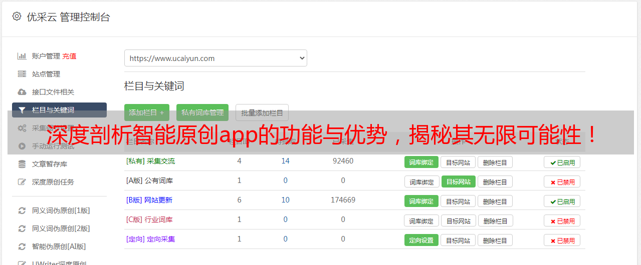 优采云 发布时间: 2023-03-03 16:38智能原创app是一款可以帮助用户快速生成高质量文章的工具,它不仅可以提高文章创作的效率,还可以让普通人也能轻松成为自媒体达人。本文将从以下八个方面逐步分析讨论智能原创app的功能和优势。