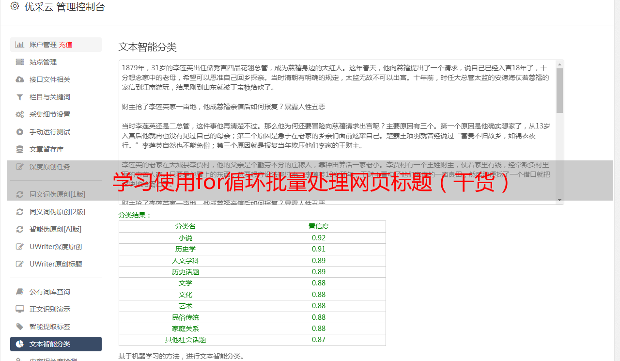 优采云 发布时间: 2023-03-03 16:38作为一名程序员,我们经常需要从不同的网站上获取信息。而这些信息中,网页标题无疑是最基本、最重要的内容之一。那么如何使用for循环抓取多个网页标题呢?本文将详细介绍这一过程,帮助你轻松实现。