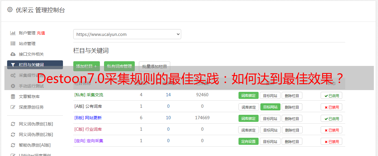 优采云 发布时间: 2023-03-03 19:12Destoon7.0是一款功能强大的网站建设系统,它的采集功能可以帮助用户快速获取所需信息。但是,如何使用Destoon7.0的采集规则才能达到最佳效果呢?本文将为您详细介绍。