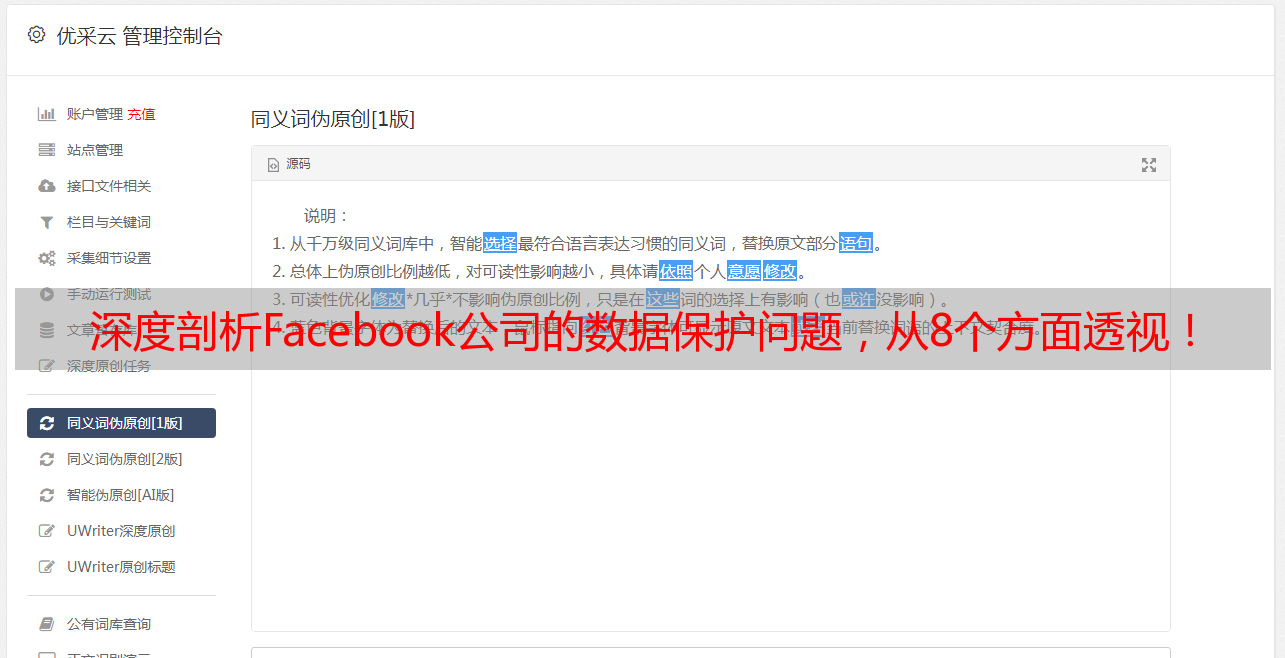 优采云 发布时间: 2023-03-04 06:08在互联网时代,数据已经成为了最重要的资产之一。而Facebook作为全球最大的社交媒体平台,自然也拥有着海量的用户数据。然而,在这些数据背后,却存在着许多隐私泄露和滥用的问题。本文将从8个方面对Facebook公司的数据抓取进行深入分析,帮助读者更好地了解和保护自己的隐私。