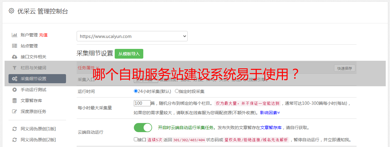 随着互联网的飞速发展,网站建设受到越来越多的关注. 一个优秀的公司网站可以认可公司形象,也可以成为产品或服务推广的重要窗口,是公司采集客户反馈并建立产品信息数据库的重要渠道. 与自主开发相比,自助式网站建设具有网站建设速度快,成本低的优点,可以满足一些中小企业的网站建设需求,自助式网站建设平台越来越多在市场上供企业选择.