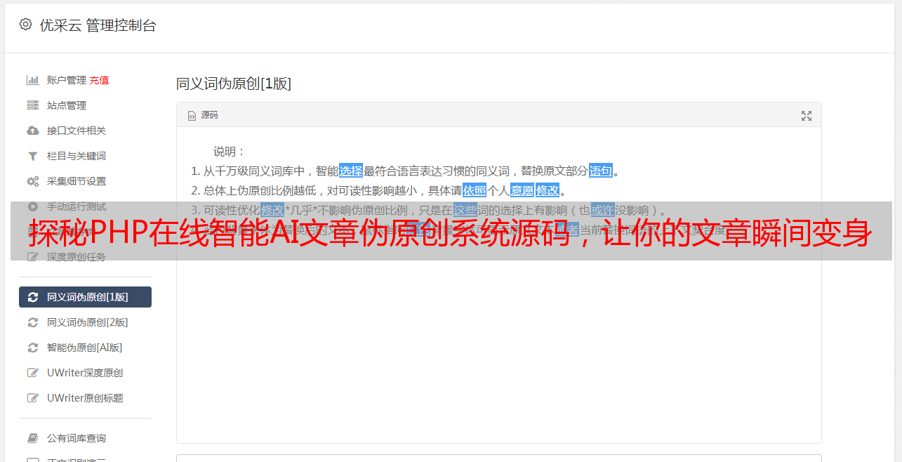 探秘PHP在线智能AI文章伪原创系统源码,让你的文章瞬间变身高质量原创!