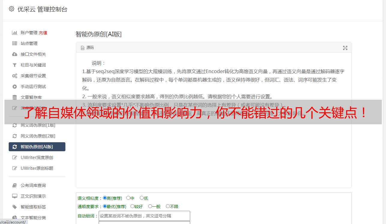 优采云 发布时间: 2023-03-04 10:13自媒体已经成为当今社会的热门话题,而xycms则是这个时代的新明星。本文从九个方面对xycms进行分析,探讨其在自媒体领域的影响和价值。