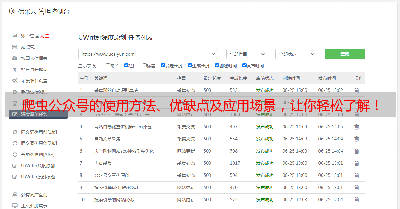 优采云 发布时间: 2023-03-04 11:15近年来,随着互联网技术的发展,数据已经成为了企业和个人获取成功的关键。然而,如何快速、准确地获取数据成为了一个难题。这时候,爬虫公众号就出现在我们的视野中。本文将从爬虫公众号的概念、应用场景、优点、缺点、使用方法、法律风险、相关技术以及未来发展等八个方面进行详细分析。