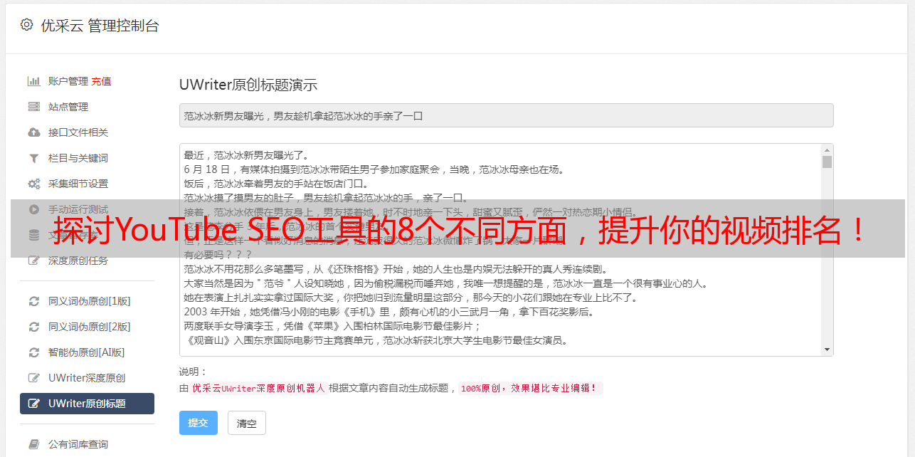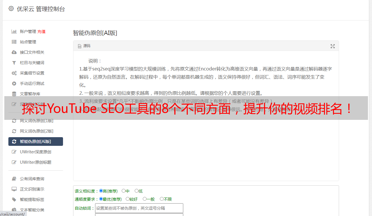 优采云 发布时间: 2023-03-04 14:12想要在YouTube上获得更多的曝光和流量吗?那么,你需要了解一些关于YouTube SEO工具的知识。下面,我们将从8个不同的方面来深入探讨这个话题。