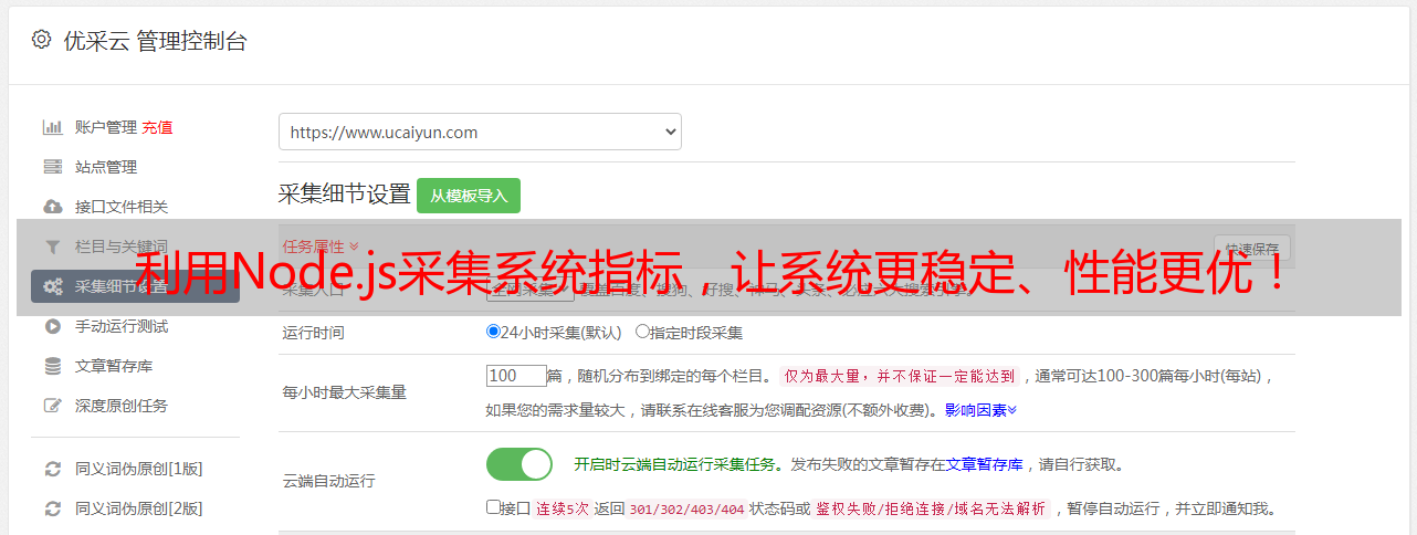 优采云 发布时间: 2023-03-04 15:13Node.js作为一种高效、轻量级的JavaScript运行环境,正在被越来越多的开发者广泛使用。在开发Node.js应用程序时,我们需要关注系统的性能和稳定性,了解系统指标是非常重要的。