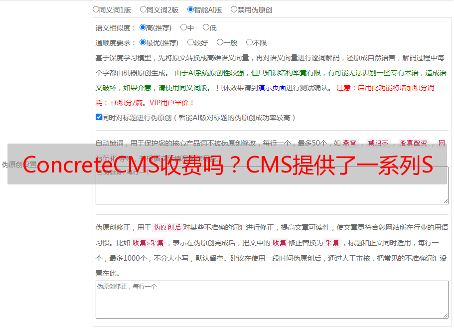 ConcreteCMS收费吗?CMS提供了一系列SEO工具